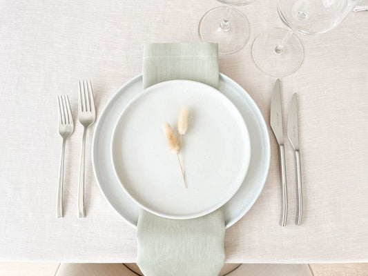 White Linen Placemat with Green and Pink, Spring