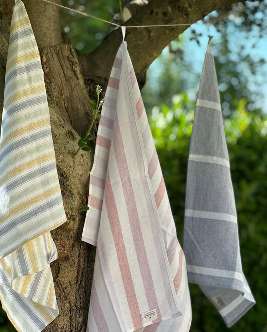 Pack of 3 Washed Linen Kitchen Cloths, Stripes
