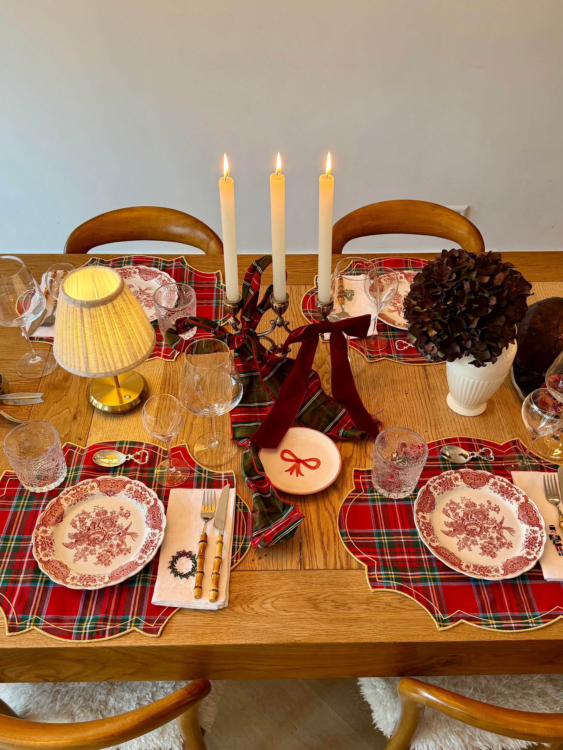 Bring elegance, tradition, and a festive touch to your table with our Red Tartan Placemat with Gold Border. The classic tartan pattern comes to life with subtle lurex threads that add a delicate shimmer, creating the perfect balance between tradition and modernity.
