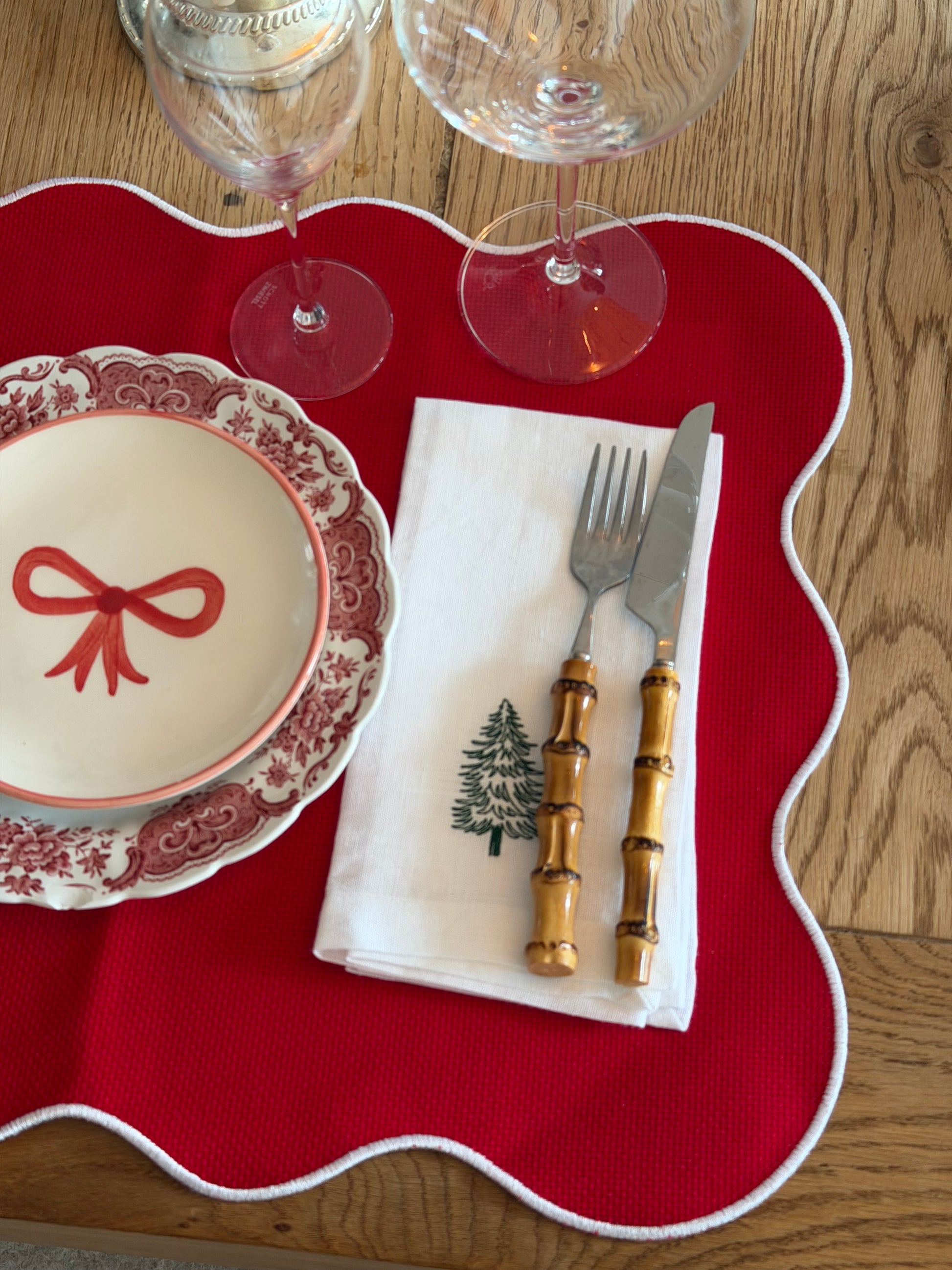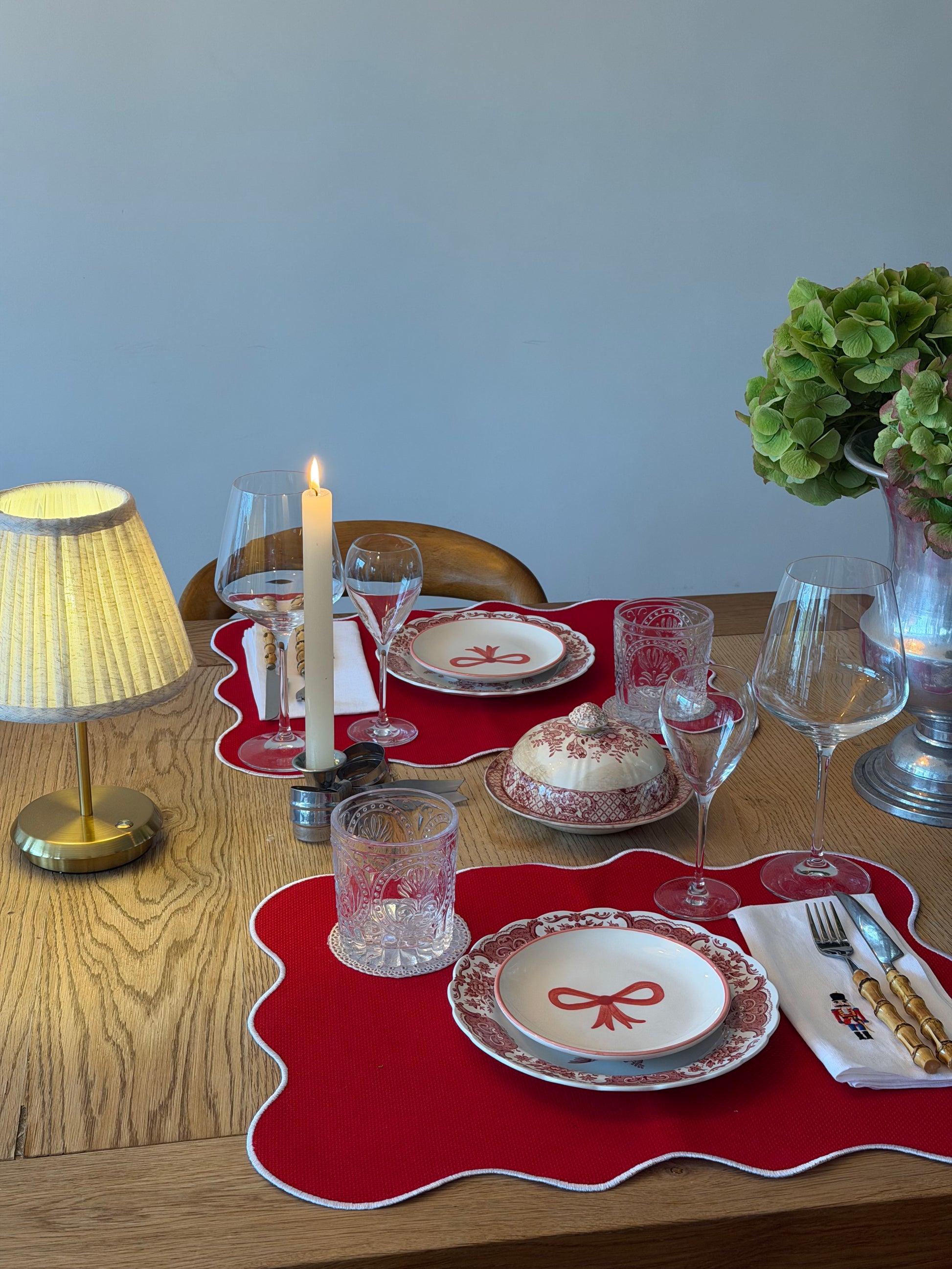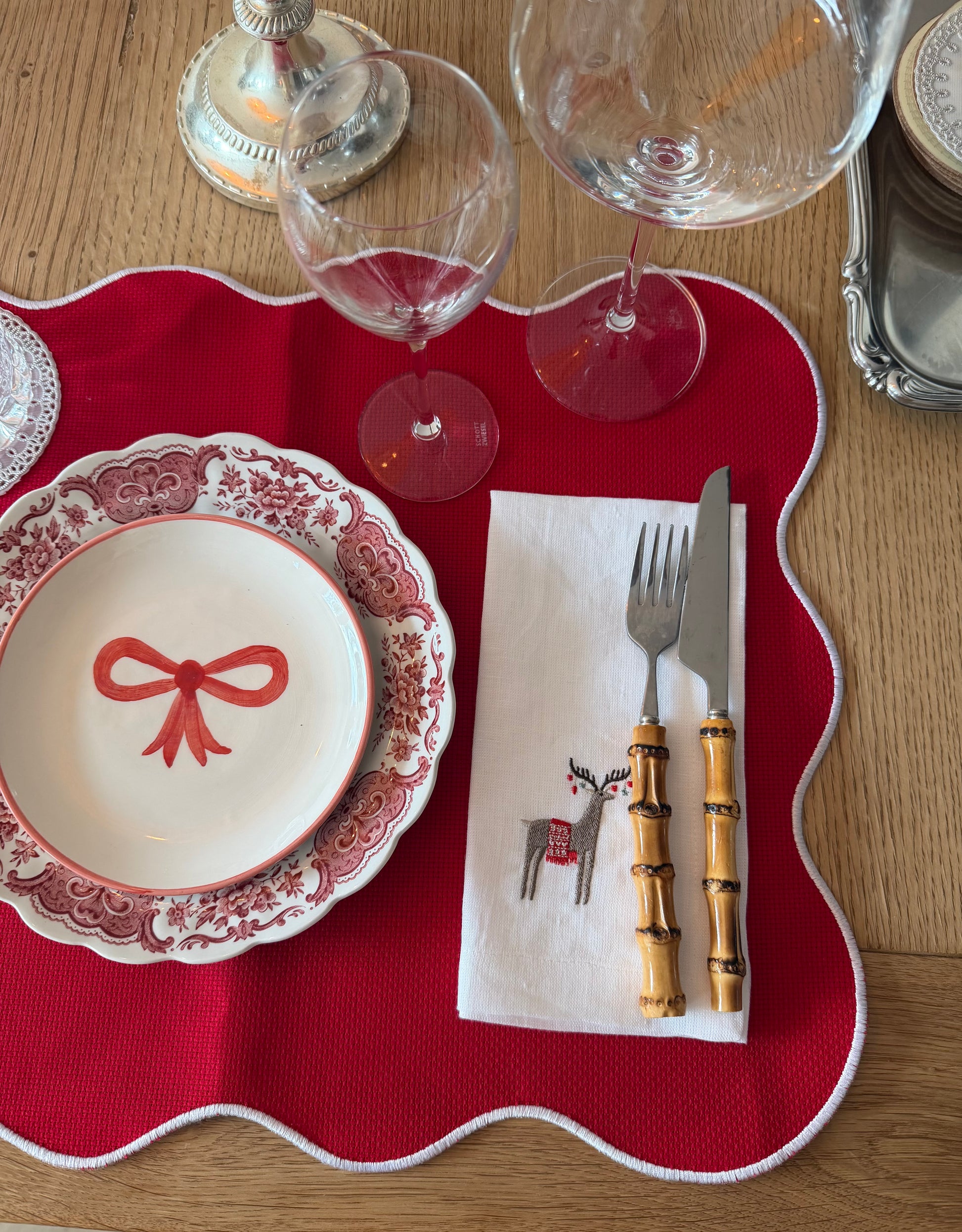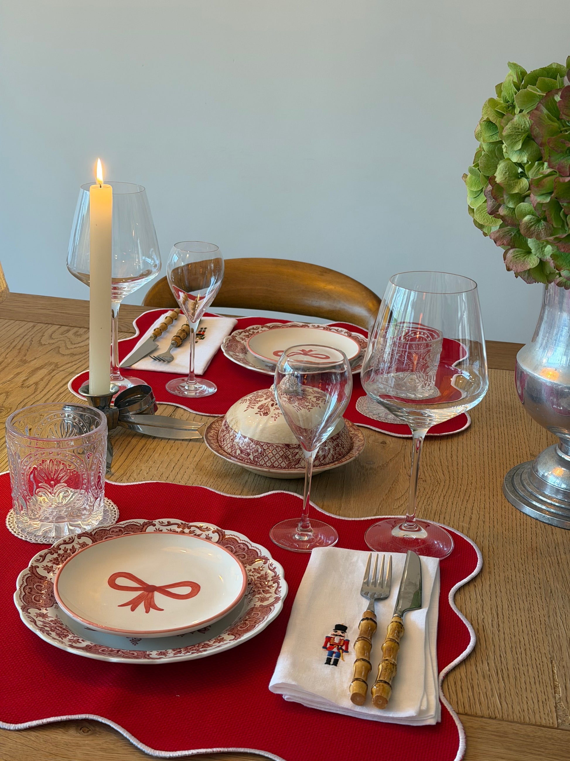 O Individual Vermelho Ondulado com Bordado Branco é a peça ideal para aquecer a sua mesa com cor, charme e delicadeza. O tom vermelho intenso cria um ambiente acolhedor e festivo, enquanto o bordo ondulado com bordado branco acrescenta um detalhe suave e romântico — perfeito para momentos especiais ou para elevar o quotidiano.